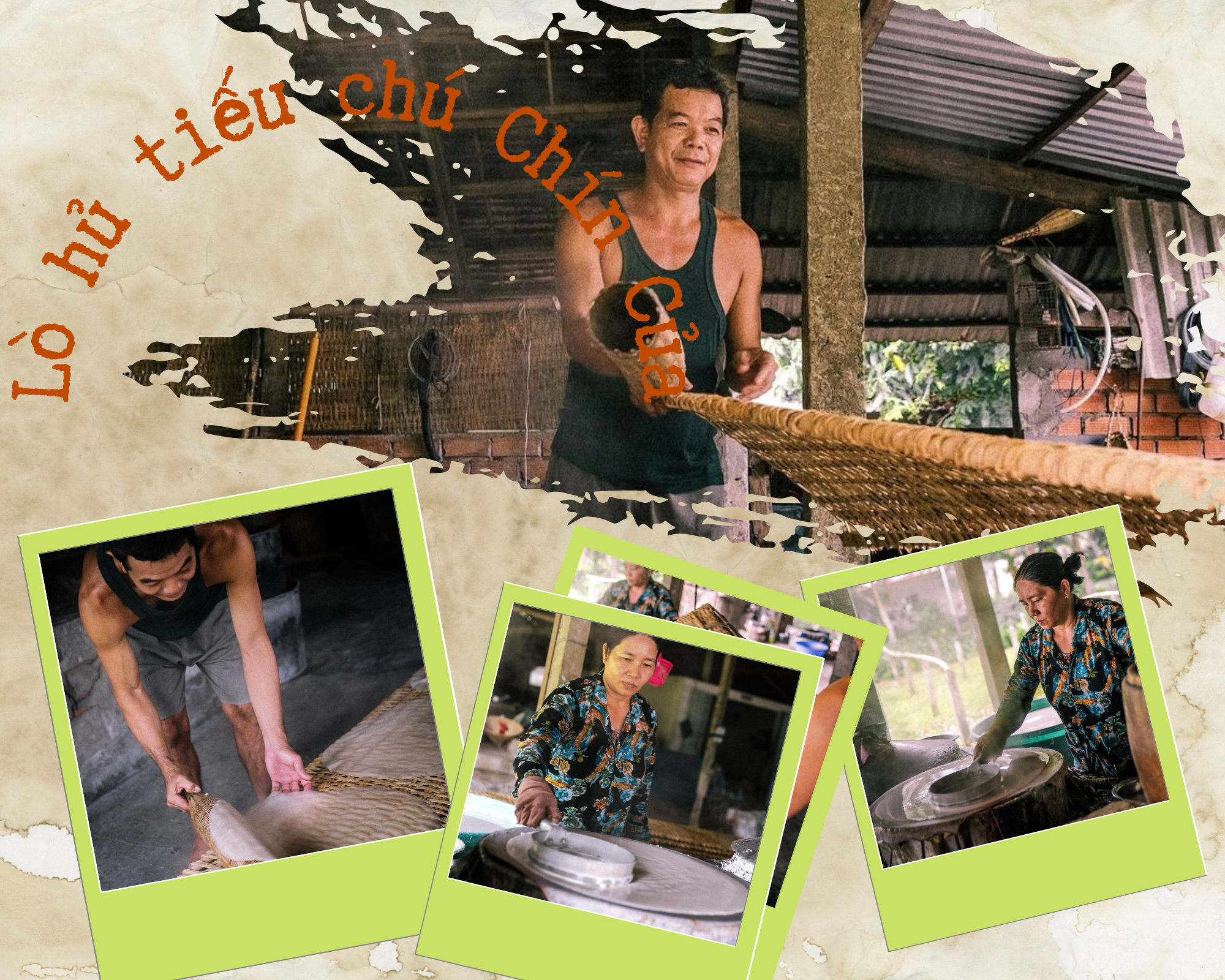 Đến lò hủ tiếu Chín Của, du khách sẽ được tận tay xắn áo lên để nhào bột, tráng bánh và sau đó đem phơi. Sau khi thành quả đã hoàn thành, du khách sẽ đem bánh hủ tiếu đi cắt cùng người dân địa phương. Được tự tay làm nên món hủ tiếu trứ danh thì còn gì bằng.