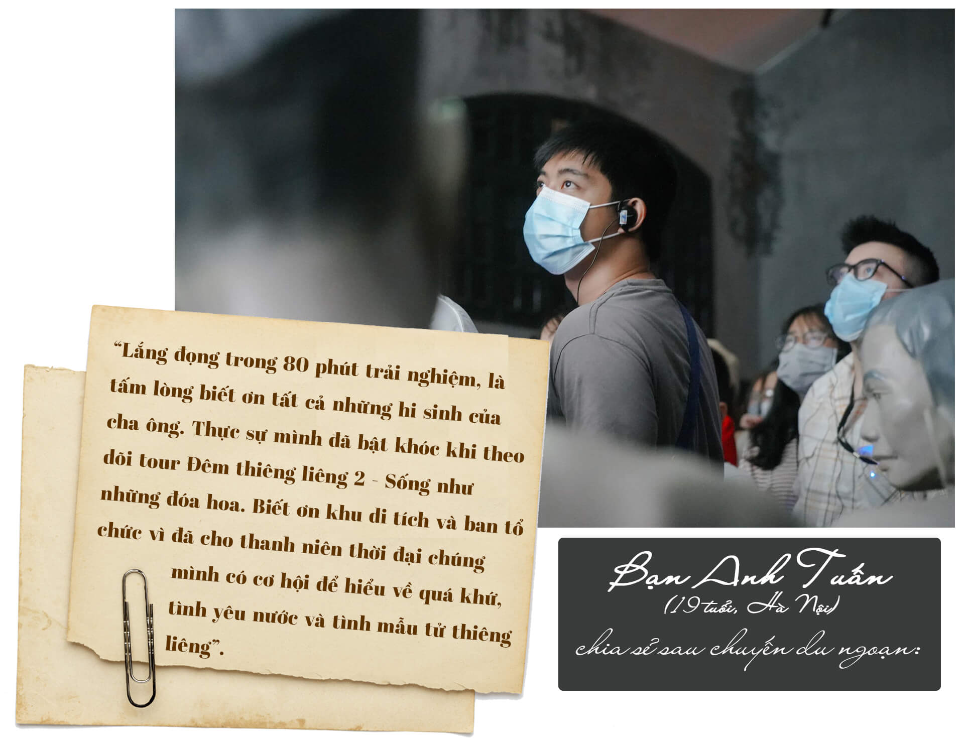 Ra mắt hai chương trình với tựa đề Đêm linh thiêng - Sáng ngời tinh thần Việt và Sống như những đóa hoa, mỗi sản phẩm ở nhà tù Hỏa Lò mang những mảng màu trầm lắng khác nhau. Là câu chuyện của các nữ chiến sĩ kiên trung, những bà mẹ Việt Nam anh hùng vì lý tưởng đã gạt đi tất cả lên đường hoạt động. Khắc họa đậm nét nhất là câu chuyện của bà Hoàng Thị Ái - vợ của nhà cách mạng Nguyễn Phong Sắc phải gửi con khi đứa bé còn đang khát sữa mẹ, là bà Nhiêu Sáu anh dũng trong sự kiện “Hà thành đầu độc”… Những câu chuyện ấy không chỉ qua lời kể của hướng dẫn viên, mà còn được khắc họa qua từng hoạt cảnh sinh động của các diễn viên, viết lên “tour đêm cảm xúc” đầy tự hào.