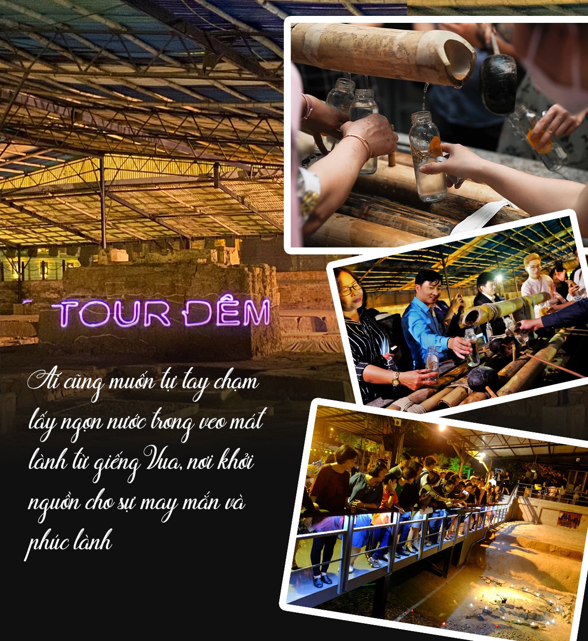 Tiếp đó, hành trình tiếp nối bằng chuyến tham quan khu di tích khảo cổ với các dấu tích cung điện vàng son một thuở còn sót lại, ngắm nghía những hiện vật nghìn năm từ lòng đất. Tự tay lấy cho mình dòng nước mát lành từ giếng Vua, nơi khởi nguồn cho nguồn sống dồi dào và phúc lành, để cảm nhận vẹn tròn câu chuyện có thật bước ra từ nghìn năm lịch sử.