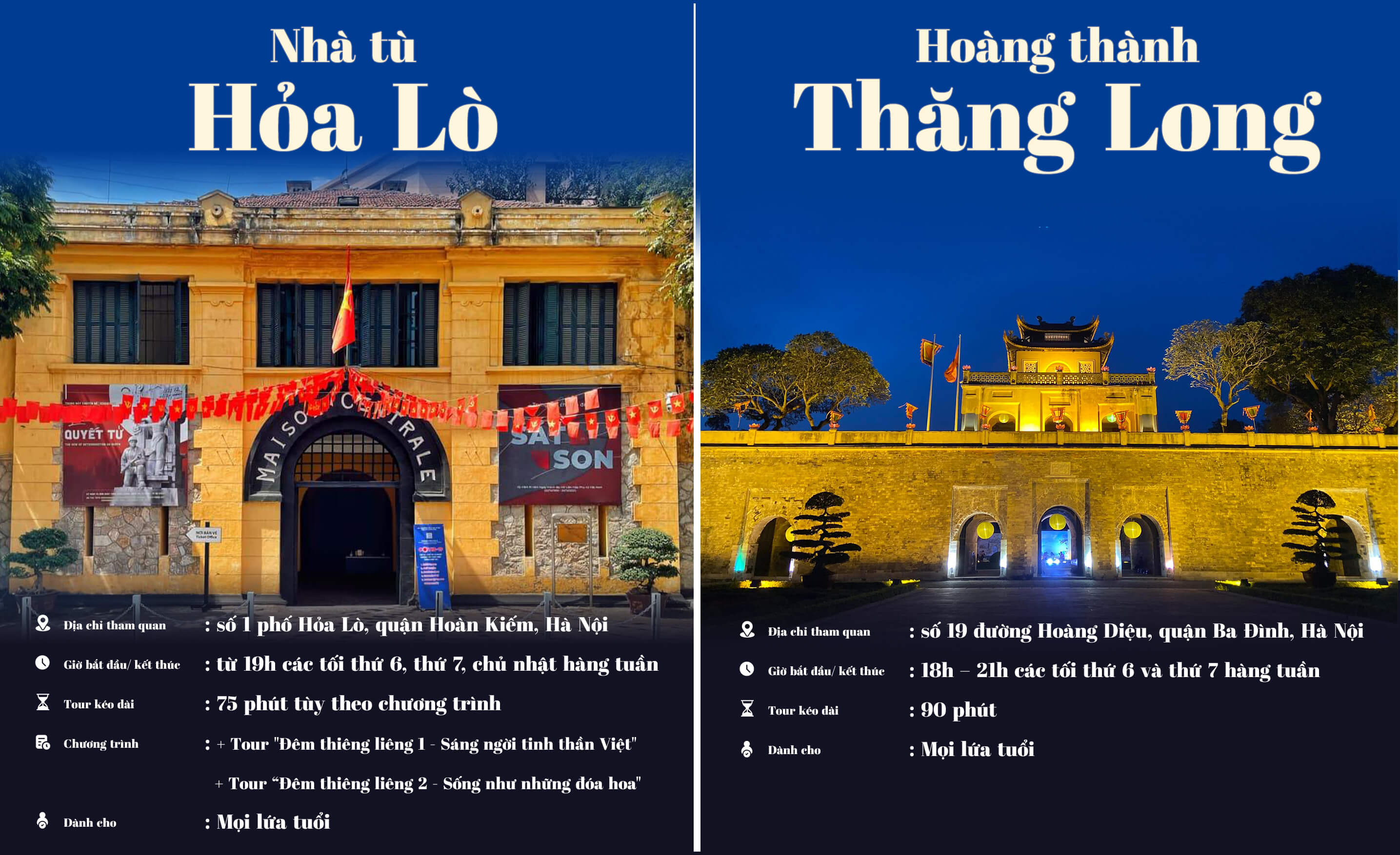 Mới đây, Hà Nội đã đưa ra hai sản phẩm du lịch mới lạ, đánh mạnh vào trải nghiệm về đêm ở Hà Nội. Một, là giải mã Hoàng thành Thăng Long hơn nghìn năm lịch sử. Hai, là tham quan di tích nhà tù Hỏa Lò thiêng liêng, nơi đã từng là “địa ngục trần gian” giữa lòng Hà Nội. Hai trong một mà một trong hai, nhớ về đất Kinh Kỳ ngàn năm văn hiến hay thẩm thấu trang lịch sử đẫm máu thời Pháp thuộc… sẽ là những góc nhìn mới mẻ trong hành trình ngắm nhìn thủ đô về đêm.