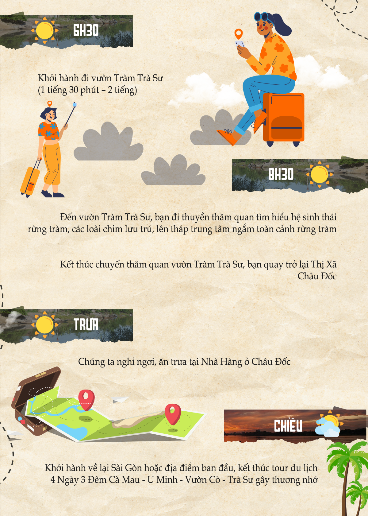 Còn gì tuyệt vời bằng cảm giác, giữa lúc đất trời đang chuyển mình vào thu chúng ta được gác bỏ công việc sang một bên và làm một chuyến du ngoạn đến với các tỉnh miền Tây Nam Bộ. Miền Tây - cái tên gọi nơi xa ấy sao thân quen quá đỗi. Làm bất kể ai trong chúng ta cứ ngỡ như được trở về nhà. Quê hương Việt Nam, nơi sông nước ấy góc nào cũng đẹp. Bắt đầu hành trình về nơi đất mũi Cà Mau - U Minh - Vườn Cò - Trà Sư để làm giàu thêm cảm xúc của bản thân và ghi lại vào cuốn sổ cuộc đời những trải nghiệm đáng nhớ không thể quên.