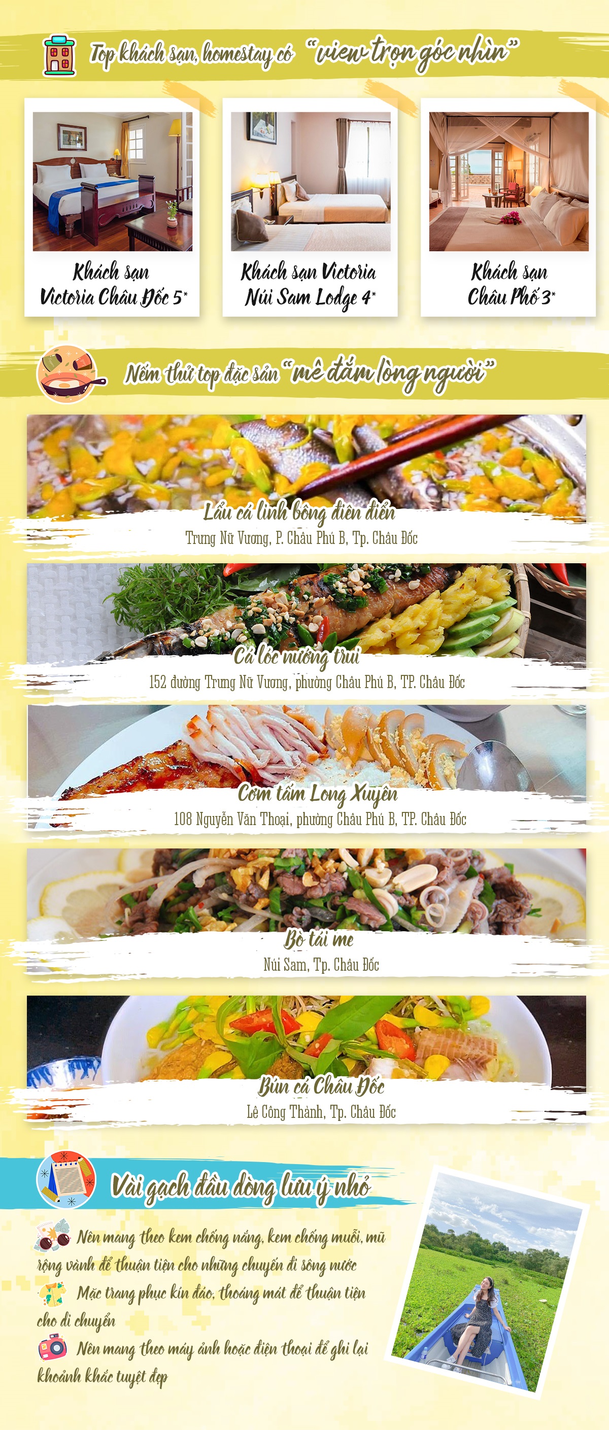 Rời mảnh đất Cần Thơ hiền hòa, mình đến Châu Đốc mùa này, chắc hẳn ai cũng ngất ngây trước vẻ đẹp chân quê miền sông nước của thành phố biên cương của tỉnh An Giang – Châu Đốc. Ở nơi đó, có làng nổi Châu Đốc - nơi người dân mưu sinh quanh năm bằng nghề nuôi cá lồng với loài cá ba sa nức tiếng xa gần. Còn có một rừng tràm Trà Sư bốn bề tỏa bóng xanh mát, như muốn ôm trọn vào lòng mình mà vỗ về với khung cảnh thiên nhiên bình yên mà thanh tao.