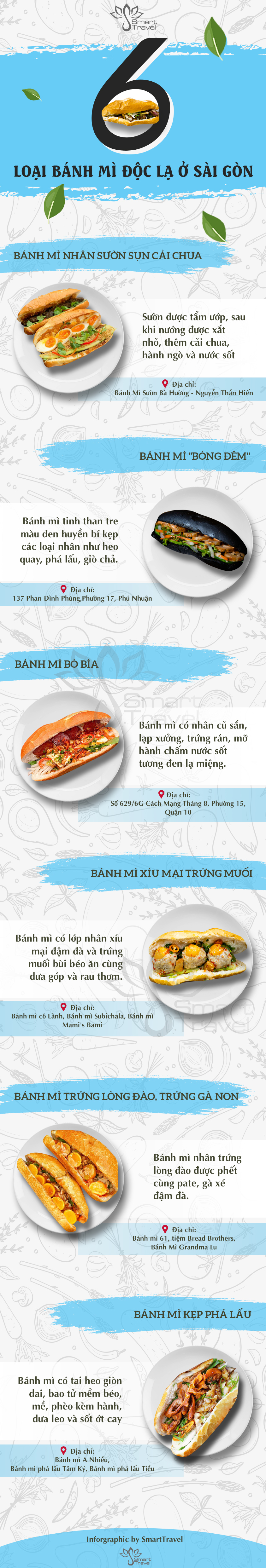Sài Gòn không chỉ là điểm đến có sức hút lớn với du khách nhờ sự hoa lệ mà còn khiến bao người say mê bởi những món ăn độc đáo. Với sự du nhập văn hóa phương Tây từ cuối thế kỷ XIX, ẩm thực ở thành phố này lại càng đa dạng và phong phú hơn. Nếu du lịch Sài Gòn, bạn nhất định nên thử những món bánh mì độc lạ dưới đây.