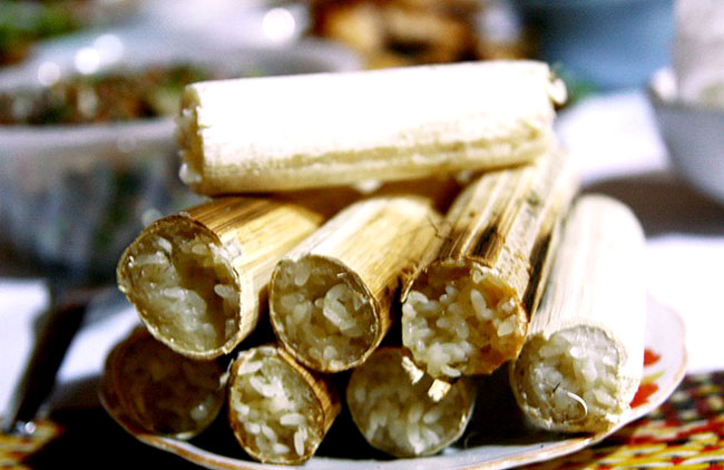 13h: Bọn mình quyết định ăn trưa tại quán gỏi lá Út Cưn. Món ăn đặc biệt này là 1 chiếc mẹt nhiều loại lá, có cuốn với nem tai, thịt, xoài... Chi phí 620.000VNĐ cho 1 mẹt lá, 2 đĩa thịt gọi thêm, 6 ly trà tắc và 1 đĩa cơm chiên.