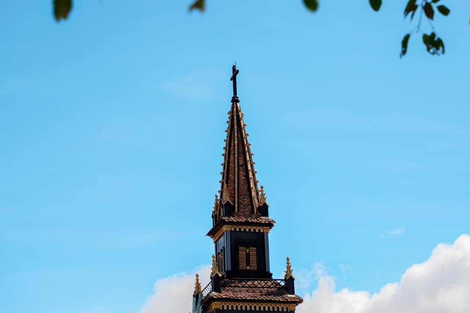 Với lối kiến trúc châu Âu, và tone màu chủ đạo là đen xám huyền bí, nhà thờ chính tòa Kontum cũng là 1 điểm đến mà cần phải đi qua khi đến đây, ở đây khá đông người chụp hình, nên mình hay chụp góc từ dưới lên, và tự trang bị trước kĩ năng xóa người thành thạo.