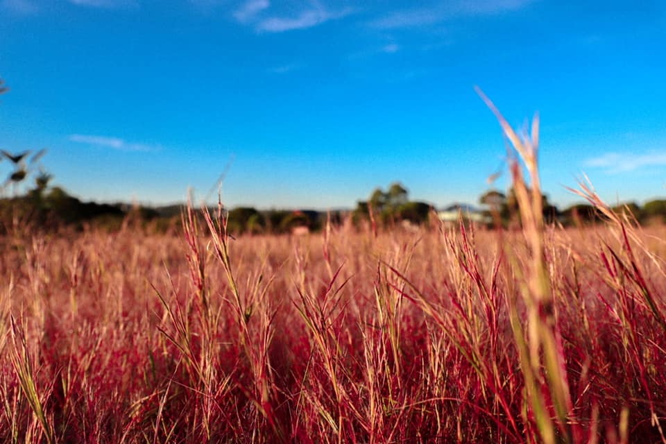 Tầm 20-30 phút đi xe là đến nơi, bạn sẽ nhìn thấy một đồng cỏ rộng rãi, đằng xa xa là rừng cây. Mình đến nơi lúc 6h15, nắng lúc đó chiếu xuống cỏ có màu hồng cam, sau đó tầm 7h30-8h00 đổ đi thì bắt đầu chuyển sang màu vàng.