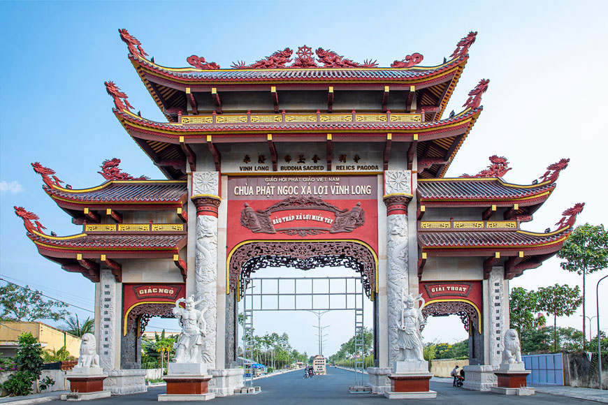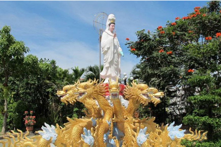 Chùa mang phong cách kiến trúc cổ điển của Nam Bộ với mái ngói uốn lượn, cột kèo chạm trổ tinh xảo và các tượng Phật được điêu khắc tỉ mỉ. Ở địa điểm tâm linh này, có các pho tượng Phật như Quan m Bồ Tát, Phật A Di Đà…