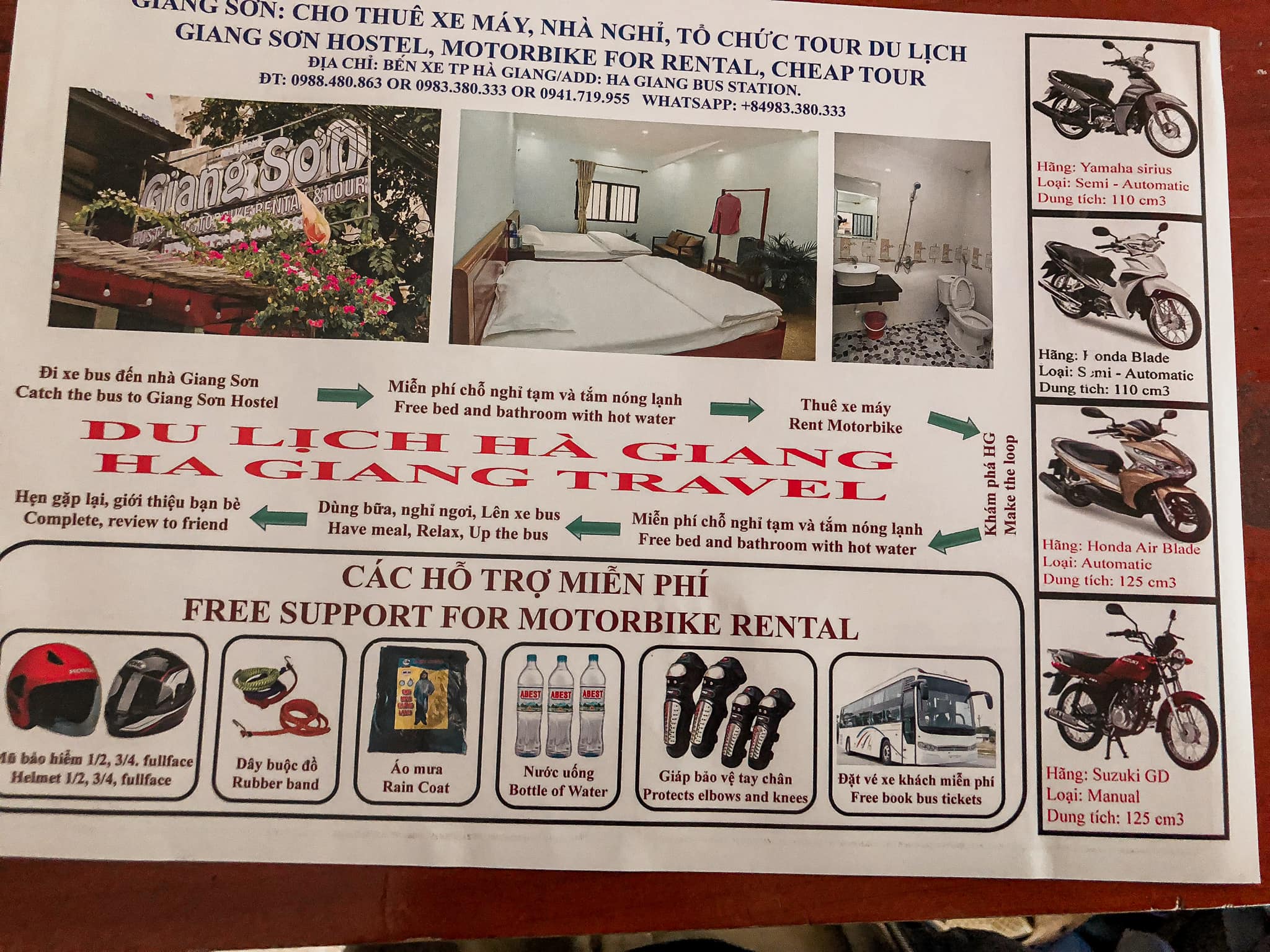 Đi du lịch khắp tỉnh ở Việt Nam đa phần là mình đều thuê xe máy để di chuyển thăm quan các địa điểm, Hà Giang cũng vậy. Nhưng mà ấn tượng nhất về dịch vụ thuê xe và chất lượng thuê xe thì tại chỗ thuê xe của chị Giang làm mình ưng nhất.