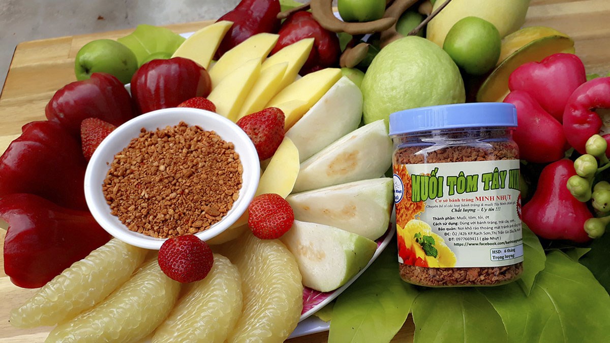 Nhắc đến Tây Ninh, ta không thể không nhắc đến món muối tôm nổi tiếng. Đây là một loại gia vị mang đậm hương vị và sự tinh tế của ẩm thực Việt Nam. Muối tôm được làm từ những nguyên liệu tươi ngon như tôm khô, muối hạt, ớt và tỏi tạo nên một hương vị mặn mà, cay cay và mùi thơm đặc trưng. Để tạo ra được một mẻ muối tôm chất lượng, mọi công đoạn từ chọn tôm, xay nhuyễn, rang đều tay và sấy khô bảo quản đều rất tỉ mỉ và cẩn thận. Muối tôm được sử dụng cho nhiều món ăn như cóc, xoài, ổi chấm và có thể dùng để nêm nếm nhiều món ăn hấp dẫn khác. Muối tôm Tây Ninh không chỉ là gia vị ngon mà còn là niềm tự hào là một trong top 13 món ăn đặc sản ngon của người dân dân Tây Ninh mà du khách nên thưởng thức hoặc mua về làm quà.
