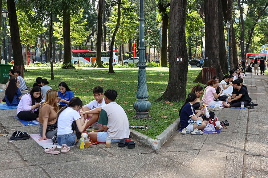 Một trong những lý do khiến Công viên 30/4 trở nên đặc biệt và hấp dẫn chính là hoạt động cà phê bệt nổi tiếng, một nét văn hóa đặc trưng và đầy sáng tạo của giới trẻ Sài Gòn. Không có bàn ghế sang trọng, không gian cà phê bệt giản dị với những tấm bạt nhỏ, nơi mọi người có thể ngồi xuống bất cứ đâu, tận hưởng ly cà phê thơm ngon và trò chuyện.