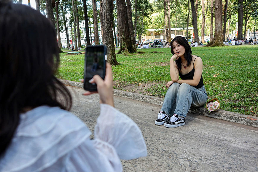 Công viên 30/4 không chỉ là nơi để thư giãn và tham gia các hoạt động cộng đồng, mà còn là điểm đến lý tưởng cho những ai yêu thích chụp ảnh. Với những góc cảnh đẹp, từ những hàng cây xanh mướt, con đường rợp bóng mát, đến những bức tường cổ kính xung quanh công viên, đây chính là một “studio” thiên nhiên khổng lồ cho ra những bức ảnh sống ảo xinh đẹp. Không ít bạn trẻ đã chọn công viên 30/4 là bối cảnh cho những bộ ảnh phong cách vintage, lãng mạn hoặc đời thường.