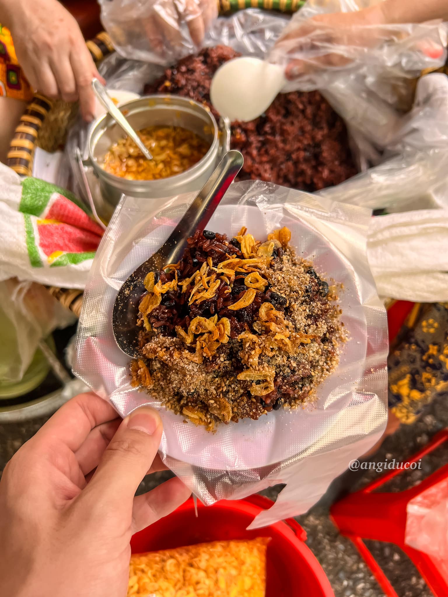 Theo tiếng lành đồn xa thì mình mò đến đây để được thẩm món xôi ngon nức tiếng. Hạt xôi mềm dẻo, đỗ đen bùi bùi, nóng hổi ăn kèm hành phi giòn rụm ngon nhức nách.