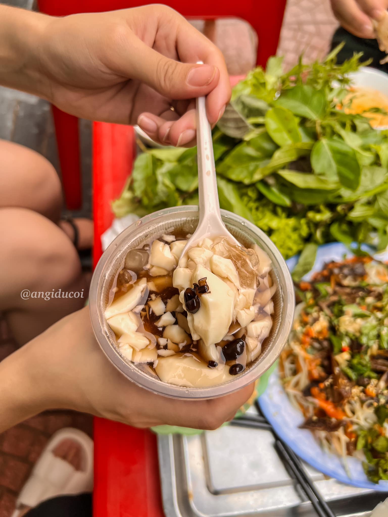 Mình đang ngồi ăn nộm thì có một anh chạy ra hỏi: “Em zai có ăn chè tàu pha không?” Nghe tên lạ lạ mình gật đồng đầu ý luôn và biết đó là chè đỗ đen mix với tàu phớ