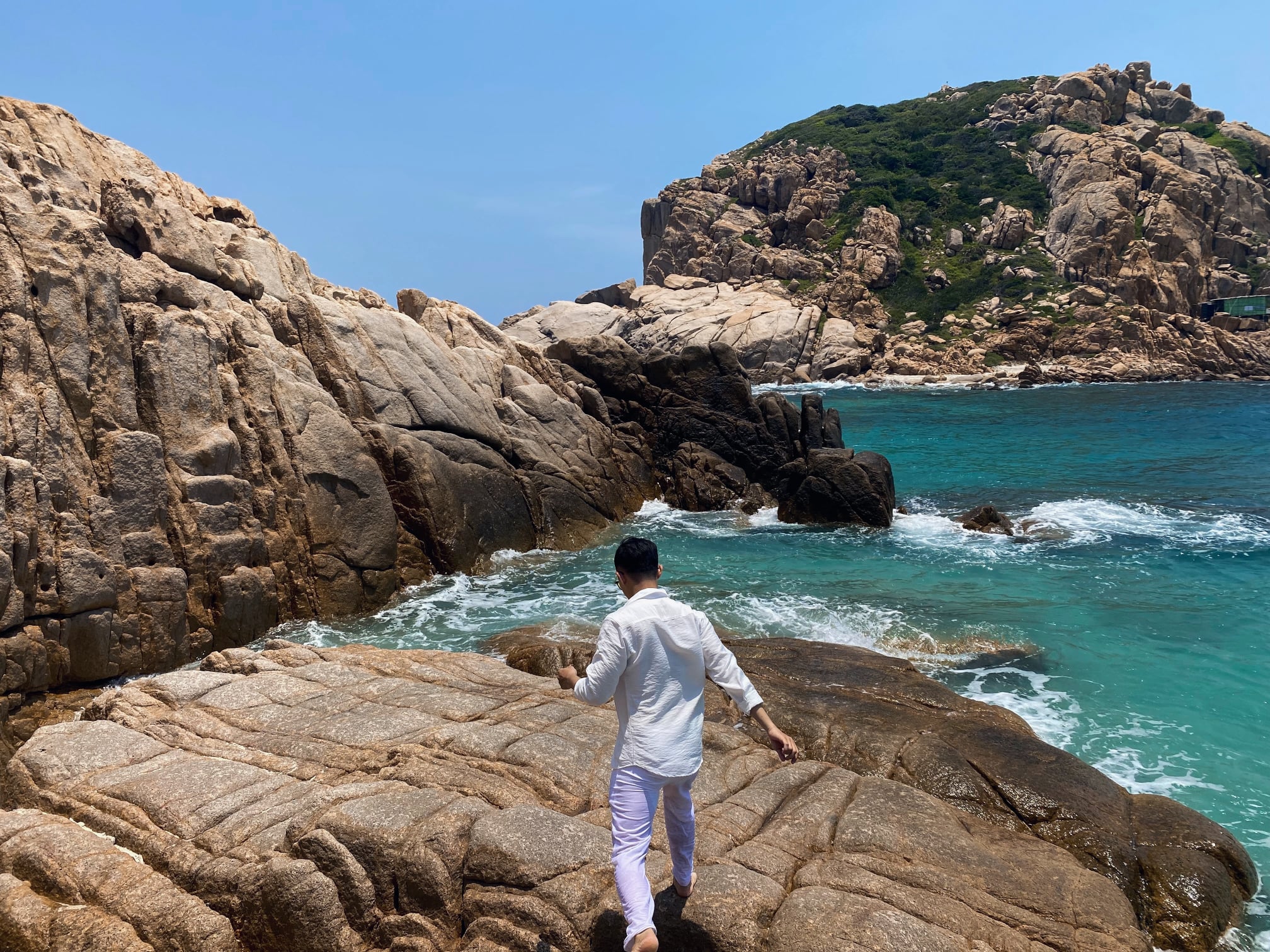 Sau khi check in khách sạn thì mình lấy xe đi ăn sáng, bắt đầu đi Hang Rái và Vĩnh Hy. Mình đi Hang Rái trước vì nhớ là nếu đến đây trưa sẽ rất nắng, tuy nhiên lúc mình đến thì nước biển dâng cao, che mất mỏm sang hô check in thần thánh ở đây. Kinh nghiệm mình biết được là các bạn nên đi lúc không có trăng vì khi trăng tròn thì thủy triều lên, nước biển lớn sẽ bị như mình; hoặc các bạn nên cố gắng có mặt ở đây lúc 6h sáng để nước thấp, không có ai check in và không nắng.