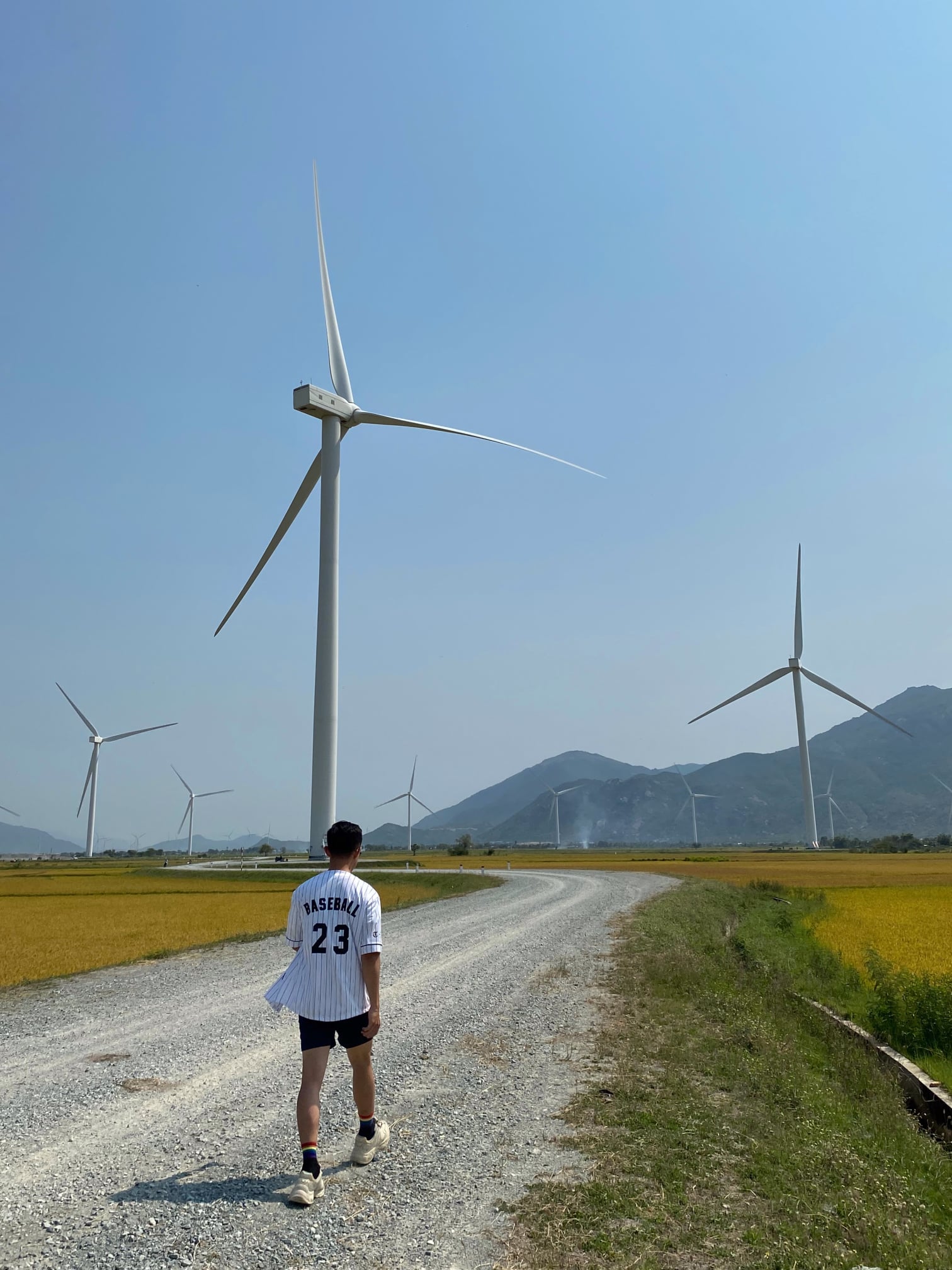 Ngày 3: Mình đi cánh đồng điện gió và Tháp Chàm. Nghe nói ở Ninh Thuận đến 8 cánh đồng điện gió nhưng mình chọn điện gió Đầm Nại vì mọi người bảo đây là cánh đồng đẹp nhất Ninh Thuận và mình công nhận là ở đây đẹp thật.