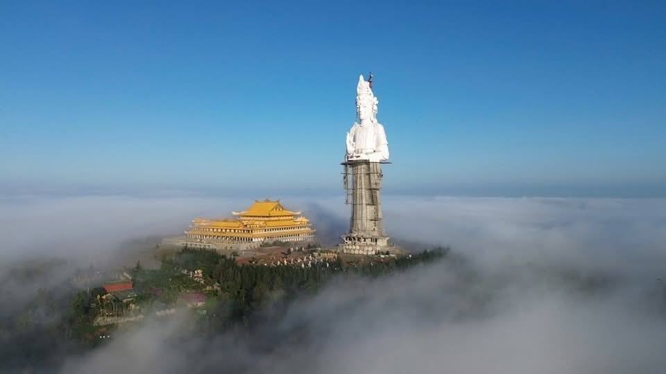 Vào buổi sáng, chùa Minh Đức ở Quảng Ngãi hiện lên như một chốn bồng lai tiên cảnh.