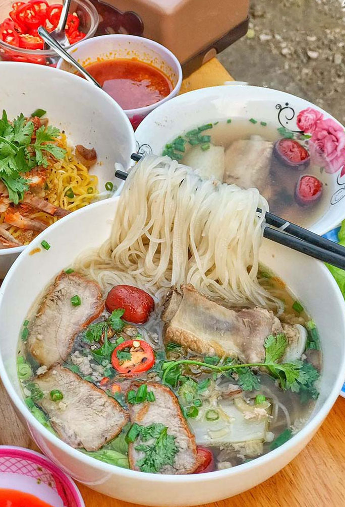 Thưởng thức bún quậy Kiến Xây là một trong những trải nghiệm ẩm thực đặc sắc nhất tại Phú Quốc. Không chỉ là món ăn, bún quậy còn mang đến một “show diễn” trực tiếp, nơi bạn được chứng kiến toàn bộ quy trình chế biến ngay trước mắt. Sợi bún tươi được làm thủ công, cá tươi được giã nhuyễn, sau đó tất cả nguyên liệu được kết hợp cùng nước dùng nóng hổi, hương vị thanh nhẹ nhưng đầy lôi cuốn.