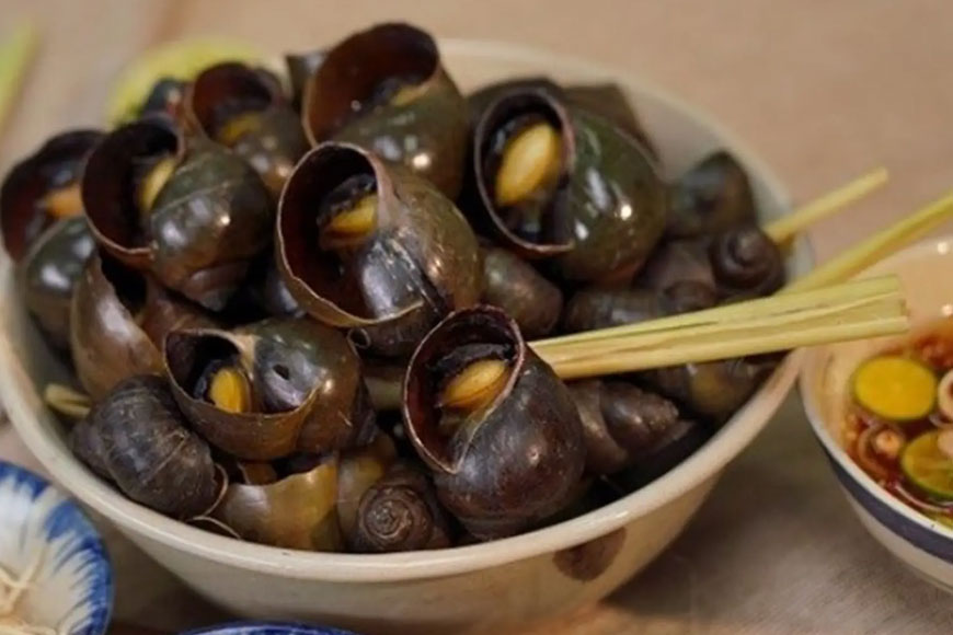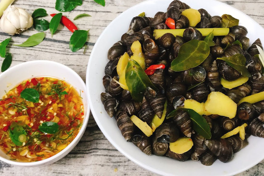 Ngày xưa, khi con nước ròng, lũ trẻ trong xóm thường rủ nhau lội mương, mò ốc. Thành quả mang về là rổ ốc đầy, được mẹ hay bà rửa sạch rồi hấp cùng sả trong chiếc nồi đất. Mùi thơm lan tỏa khắp gian bếp, đánh dấu một buổi chiều quê yên bình.