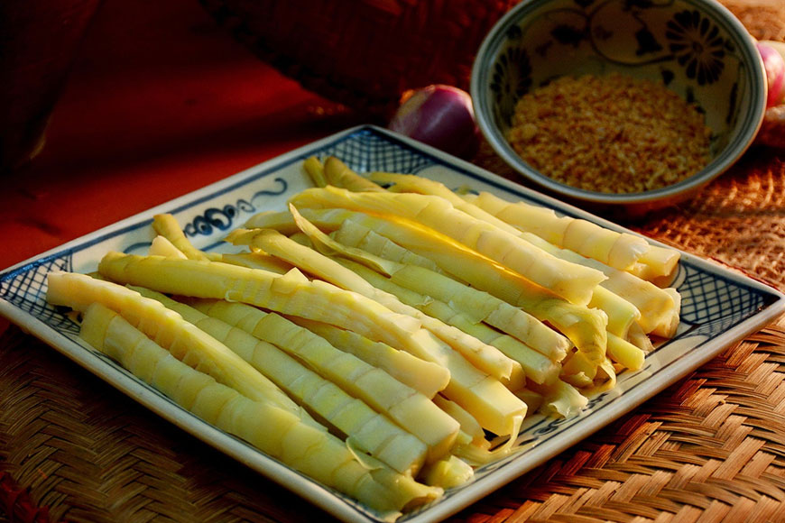 Không chỉ vậy, Mù Cang Chải còn hấp dẫn thực khách bằng những đặc sản vùng cao độc đáo. Mùa thu là mùa của táo mèo, loại quả chua chát khi ăn tươi nhưng lại thơm nồng và ngọt hậu khi ngâm rượu hoặc siro. Người dân địa phương còn sáng tạo với các món ăn dân dã như muồm muỗm, châu chấu rang giòn, béo bùi mà lạ miệng. Đặc biệt, măng rừng có thể luộc chấm mẻ hoặc ngâm giấm chính là món ăn “giải nhiệt” sau những ngày rong ruổi dưới nắng vàng.