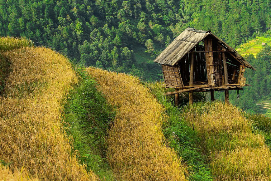 Từ tháng 9 đến tháng 10, Chao Hạ bước vào mùa lúa chín – khoảng thời gian được mệnh danh là “mùa vàng” của Tây Bắc. Những thửa ruộng bậc thang tầng tầng lớp lớp như những nấc thang lên trời, khoác lên mình sắc vàng óng ánh, trải dài khắp triền núi. Không khí lúc này khô ráo, se lạnh về sáng sớm và chiều tối, rất thích hợp cho các hoạt động dã ngoại, chụp ảnh, hay đơn giản chỉ là ngồi bên mái hiên gỗ nhìn nắng đổ vàng trên rừng.