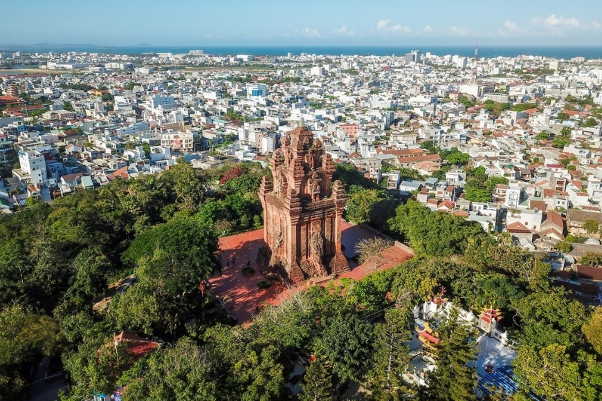 Nếu bạn di chuyển từ sân bay Tuy Hòa (cách Tháp Nhạn khoảng 7 km), hành trình đến tháp cũng vô cùng thuận tiện. Chỉ cần đi theo quốc lộ 1A về phía trung tâm thành phố, sau đó rẽ trái vào đường Nguyễn Huệ rồi nối tiếp vào đường Lê Trung Kiên, bạn sẽ nhanh chóng đến khu vực núi Nhạn. Thời gian di chuyển trung bình từ sân bay chỉ khoảng 15–20 phút bằng taxi, xe máy hoặc xe ôm công nghệ. Ngoài ra, du khách đi tàu hỏa hoặc xe khách cũng có thể đón taxi từ ga hoặc bến xe với quãng đường ngắn, chi phí hợp lý. Khu vực quanh tháp có các hàng quán, dịch vụ giữ xe, bán nước, giúp chuyến tham quan trở nên tiện lợi và dễ chịu hơn.