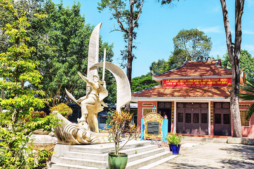 Không gian trang nghiêm của đền thờ hai vị anh hùng Thiên Hộ Dương và Đốc Binh Kiều là một điểm nhấn đặc biệt trong quần thể Gò Tháp. Ngôi đền được xây dựng khang trang, uy nghi, tọa lạc tại nơi từng là căn cứ kháng chiến chống Pháp của hai vị nghĩa quân. Hằng năm, vào ngày giỗ tháng 11 âm lịch, hàng ngàn người dân và du khách khắp nơi tề tựu về đây để tưởng niệm, dâng hương và tham dự các hoạt động văn hóa truyền thống.