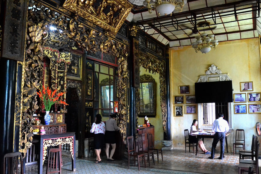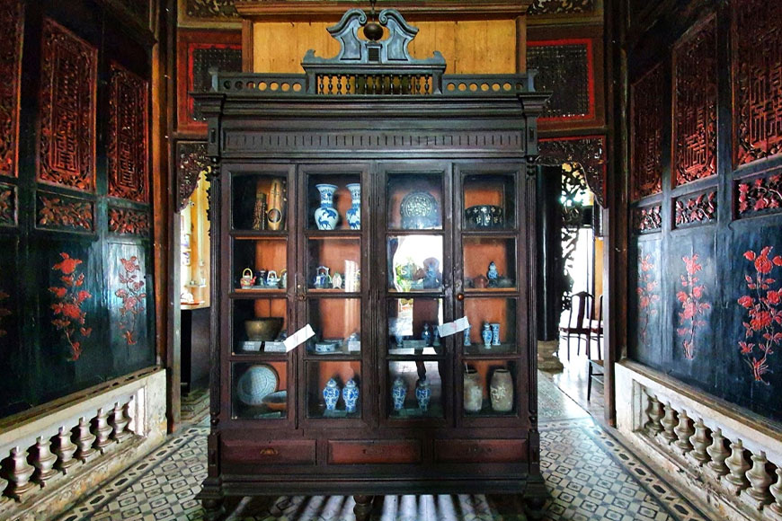 Ngay từ khi bước vào, du khách sẽ được đắm chìm trong không gian kiến trúc độc đáo nơi giao hòa giữa vẻ đẹp phương Tây hoa lệ và nét trầm mặc của Á Đông. Từng gian phòng, từng món nội thất gỗ chạm khắc tỉ mỉ đều kể câu chuyện về một thời vàng son của tầng lớp thương gia xưa. Mỗi cánh cửa, mỗi ô cửa vòm như mở ra những khung cảnh vừa cổ kính vừa lãng mạn, thích hợp để du khách chụp ảnh, ghi lại khoảnh khắc đáng nhớ giữa một không gian mang đậm hơi thở quá khứ.