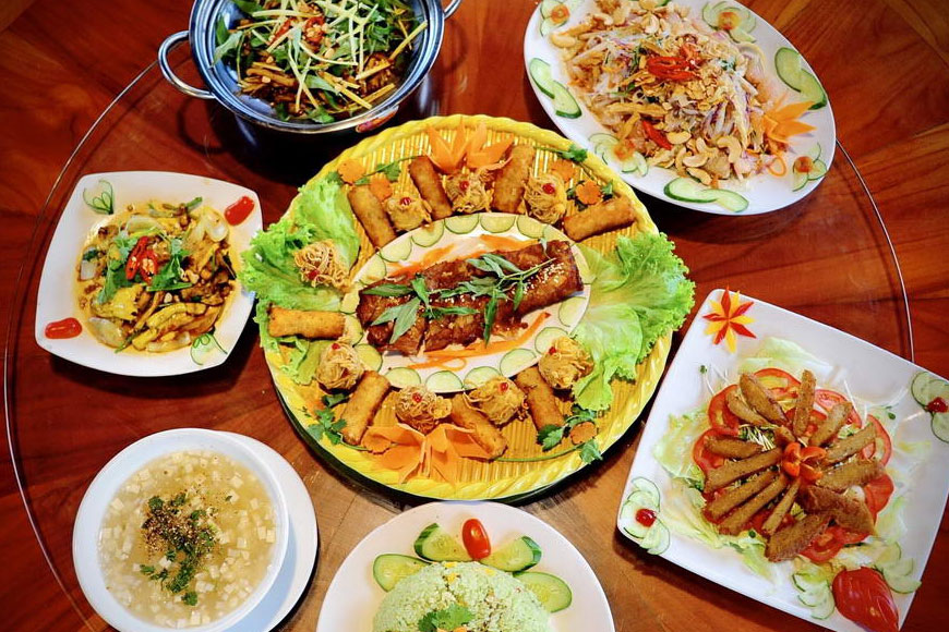Tây Ninh là vùng đất tâm linh nên ẩm thực chay ở đây cũng rất đặc biệt. Không phải kiểu món ăn giả mặn cầu kỳ, mà là những phần cơm chay giản dị: đậu hũ chiên, rau xào, canh rong biển… Ăn trong một không gian yên tĩnh sau khi viếng chùa, bạn sẽ hiểu vì sao người ta nói: có những bữa ăn không dành để no bụng, mà để thanh thản trong lòng.