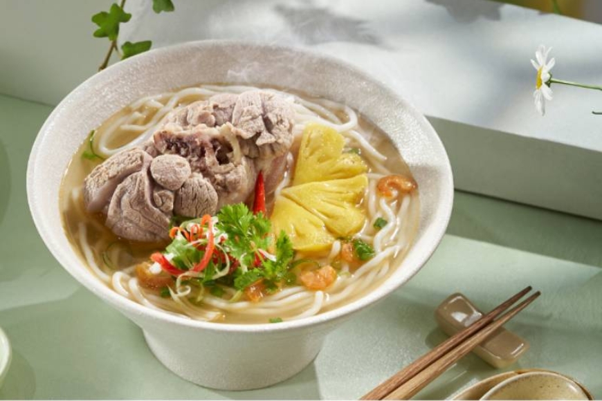 Bún bò giò heo Quảng Ngãi là một món ăn hấp dẫn mà du khách không thể bỏ qua khi đến với mảnh đất này. Dù vẻ ngoài có phần đơn giản, nhưng món ăn này lại mang đậm hương vị đặc trưng rất riêng của Quảng Ngãi. Một tô bún bò giò heo Quảng Ngãi thường chỉ bao gồm giò heo, huyết, nước dùng thanh ngọt và ăn kèm với bánh tráng nướng giòn cùng hành tím chua. Nước dùng của món ăn không sử dụng mắm ruốc hay ớt bột như bún bò Huế, mà chủ yếu nhấn mạnh vào vị béo ngọt tự nhiên từ giò heo. Sự kết hợp hoàn hảo giữa vị giòn của bánh tráng, chua nhẹ của hành tím và hương thơm tự nhiên của nước dùng tạo nên một trải nghiệm ẩm thực độc đáo, khiến du khách nhớ mãi về hương vị đặc biệt của món ngon Quảng Ngãi này.