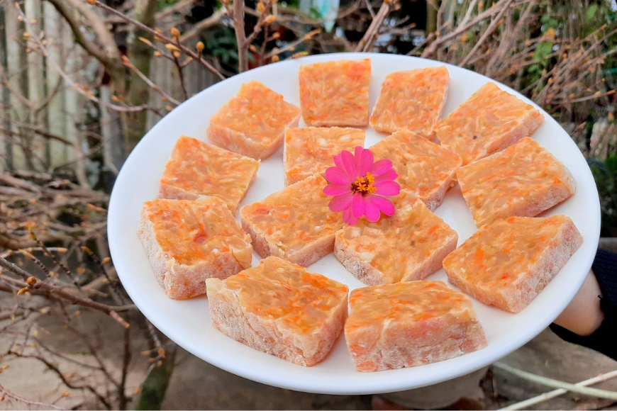 Bánh bó là một trong những món ngon độc đáo của Quảng Ngãi, gắn liền với hương vị Tết quê nhà. Món bánh này được tạo nên từ những nguyên liệu dân dã như nếp, chuối ép, gừng, dứa, cà rốt và cà chua. Sau khi nếp được giã nhuyễn thành bột dẻo mịn, các nguyên liệu còn lại sẽ được rim kỹ cùng đường trên lửa nhỏ cho đến khi săn lại, thấm đẫm vị ngọt tự nhiên. Tất cả sau đó được bó chặt lại thành hình trụ, tạo nên chiếc bánh thơm dẻo, ngọt thanh xen chút cay nhẹ của gừng, bùi bùi của nếp. Bánh bó không chỉ là món ăn truyền thống mà còn là ký ức tuổi thơ, là hương vị thân thương mà người Quảng Ngãi luôn nhớ về mỗi độ xuân về.