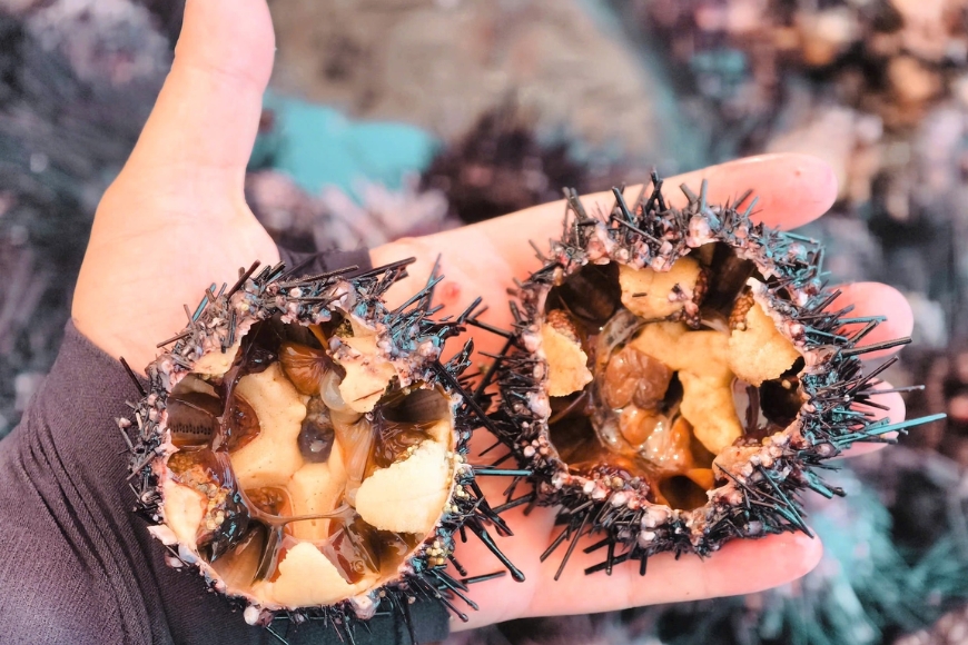 Nhum, hay còn gọi là nhím biển, từ xa xưa đã được người dân Quảng Ngãi chế biến thành món mắm quý dùng để tiến Vua. Thịt nhum béo ngậy, giàu dinh dưỡng, có thể ăn sống, làm chả trứng hoặc đặc biệt là ủ thành mắm nhum. Mắm nhum được chế biến thủ công, chỉ nêm thêm tỏi Lý Sơn và chút tiêu hạt để giữ nguyên vị tươi ngon đặc trưng. Mắm có mùi thơm nồng, vị mặn mòi khó quên, dùng để chấm rau sống, ăn kèm thịt luộc hay đơn giản là chan với cơm nóng đều khiến thực khách xuýt xoa.