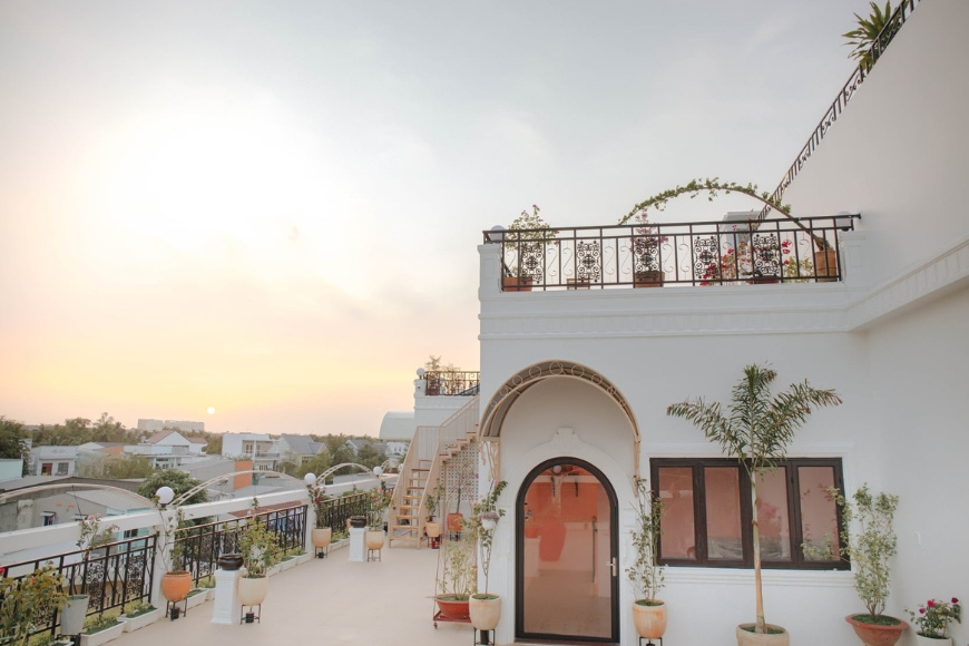 Điểm nhấn của khách sạn là tầng thượng với quán cà phê chill, nơi bạn có thể ngắm hoàng hôn và cảm nhận nhịp sống miên man. Ban đêm khu vực này lung linh ánh đèn, tạo nên không gian lãng mạn để thư giãn. Với đội ngũ lễ tân phục vụ 24/7 và nhiều ưu đãi dành cho khách lưu trú sử dụng dịch vụ đồ uống tại quán, Bích Ngoan Hotel mang đến trải nghiệm lưu trú hiện đại mà vẫn gần gũi, đầy sức sống.