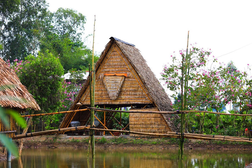 Khác biệt với các homestay thông thường, Việt Mekong Farmstay mang đến cảm giác như đang sống trong một nông trại thực thụ giữa thiên nhiên thuần khiết. Mỗi căn phòng là một ngôi nhà gỗ nhỏ xinh bên ao sen, được bao quanh bởi cây xanh, vườn rau, ao cá. Du khách có thể tham gia vào chuỗi hoạt động xanh: chăm sóc vườn, hái rau, nấu ăn cùng chủ nhà.