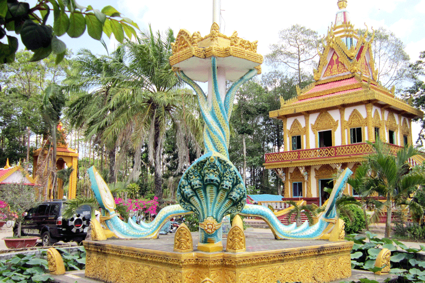 Ngoài ra, hãy chuẩn bị một chút “hành trang nhỏ” cho chuyến đi. Một chiếc nón rộng vành hoặc áo khoác mỏng sẽ giúp bạn thoải mái hơn khi tham quan trong những ngày nắng. Mang theo một ít tiền lẻ cũng là điều cần thiết để công đức, tham gia nghi lễ hoặc góp phần vào việc tu bổ chùa. Khi vào chùa Khmer, đặc biệt lưu ý một số tập tục: phụ nữ thường không trực tiếp trao lễ vật cho các vị sư, thay vào đó có thể đặt lên mâm hoặc nhờ người trung gian. Sự hiểu biết và tôn trọng tập quán địa phương sẽ khiến chuyến đi trở nên ý nghĩa hơn, để bạn vừa là du khách, vừa là người bạn đồng hành với văn hóa bản địa.