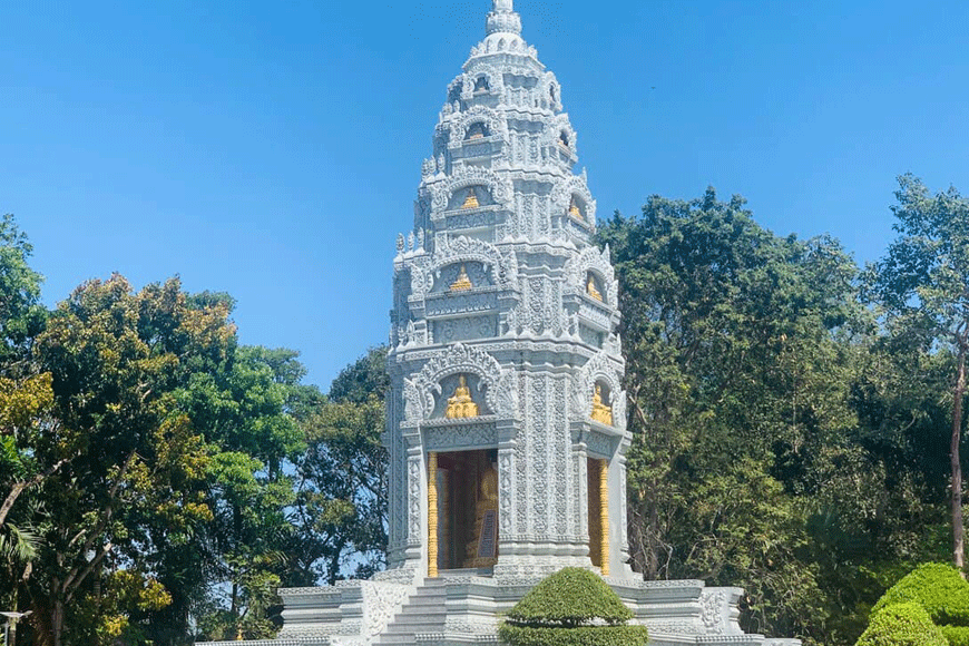 Ngoài ra, khuôn viên chùa còn vô số góc nhỏ đáng để dừng chân: những hành lang dài rợp bóng, những hàng cột chạm khắc tinh tế, hay khoảng sân rộng rãi nơi tượng Quan Âm hiền hòa đứng lặng. Mỗi góc chùa đều mang đến một vẻ đẹp riêng, khi thì uy nghi, khi thì mộng mơ, để rồi ai cũng muốn ghi lại cho mình một dấu ấn cá nhân. Chính sự kết hợp hài hòa ấy đã biến Som Rong trở thành điểm dừng chân mà bất kỳ tín đồ “sống ảo” nào cũng không thể bỏ lỡ trong hành trình khám phá miền Tây.