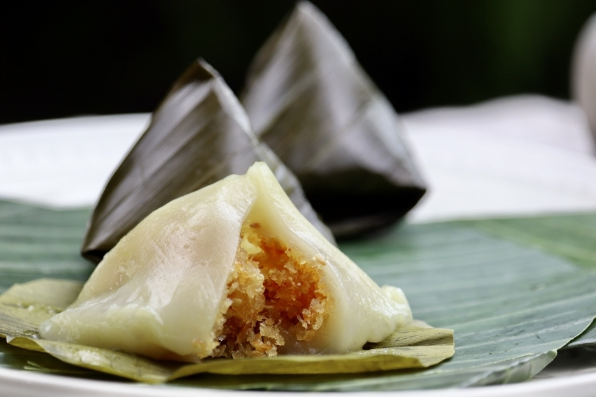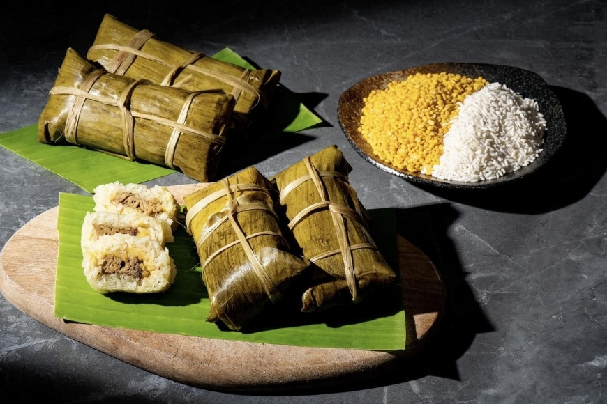 Khi bóc lớp lá chuối xanh thẫm, hơi nếp thơm quyện mùi nước cốt dừa tỏa ra, đánh thức mọi giác quan. Lát bánh cắt ra lộ rõ nhân vàng óng hoặc hồng nâu tùy loại, phần nếp mềm nhưng vẫn giữ độ dẻo, bao trọn phần nhân béo bùi. Nếu là nhân chuối, vị ngọt thanh lan tỏa, còn nhân thịt đậu xanh thì tạo sự đậm đà, chắc vị. Ăn miếng bánh trong những ngày đầu năm mới như thưởng thức cả tình thân, tình làng xóm và sự gắn bó bền chặt với cội nguồn.
