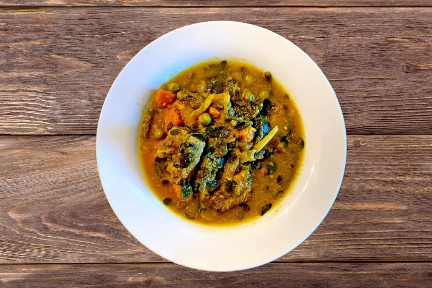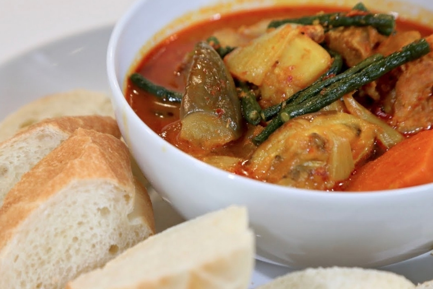 Nguyên liệu thường là thịt gà, bò hoặc vịt nấu cùng khoai tây, cà rốt, hành tây, đôi khi thêm đậu que. Món được hầm chậm để thịt chín mềm, thấm gia vị, rau củ giữ nguyên hình dạng và màu sắc. Khi múc ra, món kari vàng óng, tỏa mùi sả, nghệ, vị béo nhẹ của dừa quyện với vị ngọt tự nhiên của thịt và rau. Ăn kèm bánh mì hoặc bún tươi là đủ để cảm nhận trọn vẹn sự đậm đà nhưng vẫn thanh nhã của món ăn này.