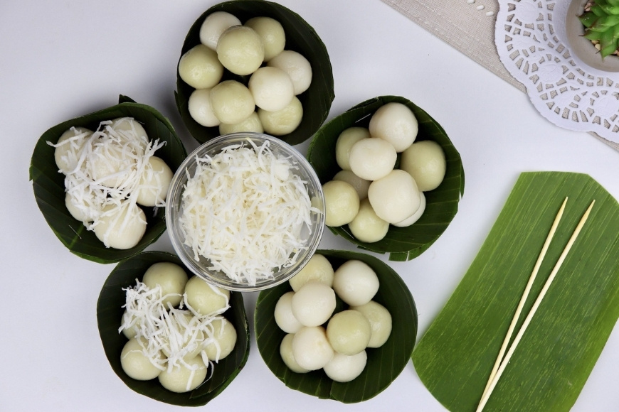 Bánh được nặn từ bột nếp dẻo, bao lấy nhân đường thốt nốt cắt nhỏ. Khi luộc chín, bánh nổi lên mặt nước, vớt ra rồi lăn qua dừa nạo sợi. Cắn một miếng, lớp vỏ mềm mịn nhường chỗ cho dòng đường tan chảy, lan vị ngọt dịu khắp miệng, xen lẫn chút béo bùi từ dừa. Món bánh này thường được ăn khi còn ấm, để cảm nhận trọn vẹn hương vị êm ái và sự giản dị đầy quyến rũ của ẩm thực Khmer.