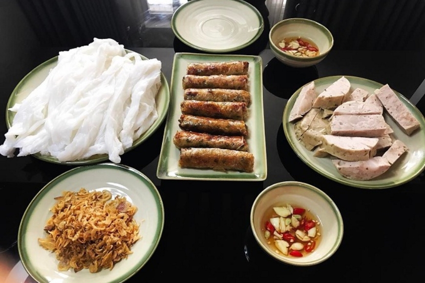Một trong những món ăn nhất định phải thử khi đến biển Thiên Cầm là bánh mướt cuốn ram. Bánh mướt được làm từ bánh tráng mỏng, mềm, bên trong cuốn thịt, miến, mộc nhĩ, hạt tiêu... rồi được đem chiên giòn thành ram nóng hổi. Khi ăn, ram sẽ được cuốn trong lớp bánh ướt mềm mại, ăn kèm với nước chấm chua ngọt và rau sống tươi ngon, tạo nên sự hòa quyện tinh tế khiến ai cũng phải nhớ mãi.