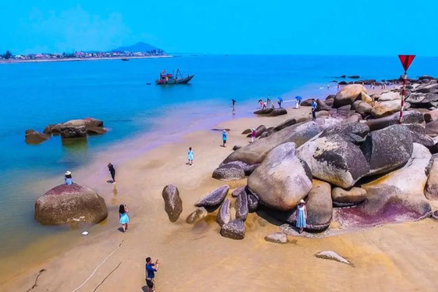 Còn với những ai ưa thích sự khám phá và chút thử thách, chuyến đi thuyền ra Hòn Bớc sẽ mang đến trải nghiệm khó quên. Hòn Bớc nổi tiếng với những bãi đá tự nhiên tuyệt đẹp, bờ cát trắng mịn trải dài cùng mặt biển xanh biếc, dịu dàng ôm lấy hòn đảo. Đắm mình trong làn nước trong vắt, lắng nghe tiếng sóng vỗ rì rào nhẹ nhàng, bạn sẽ cảm nhận được sự bình yên, tĩnh lặng hiếm có, như lạc vào một chốn thiên đường biển đảo chưa từng bị chinh phục. Đây chắc chắn là điểm đến không thể thiếu để chuyến hành trình biển Thiên Cầm thêm phần trọn vẹn và ý nghĩa.