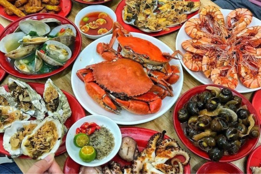 Du lịch biển Xuân Hải không chỉ hấp dẫn bởi khung cảnh thiên nhiên hoang sơ, bình yên mà còn bởi nền ẩm thực phong phú với những món hải sản tươi ngon, đậm đà hương vị biển cả. Trong số đó, ghẹ Hà Tĩnh là món ăn nổi bật mà du khách không nên bỏ qua. Ghẹ tươi sống được chế biến thành nhiều món như hấp, nướng hay xào me, mỗi cách chế biến đều giữ trọn vị ngọt tự nhiên, thơm ngon đặc trưng của hải sản miền Trung. Bên cạnh đó, thực đơn tại Xuân Hải còn phong phú với các món hấp dẫn như tôm hùm nướng, mực nướng, cá bớp nướng, sò điệp nướng mỡ hành… Tất cả đều được chế biến từ nguồn hải sản tươi sống, vừa đánh bắt từ biển vào, đảm bảo độ ngọt, dai và thơm đặc trưng.