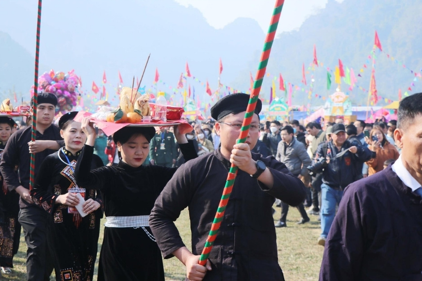 Sau phần lễ trang nghiêm là không khí tưng bừng của phần hội. Các trò chơi dân gian như tung còn, kéo co, đánh quay, đi cà kheo, đẩy gậy... rộn rã tiếng hò reo. Bên cạnh đó, trai gái trong trang phục truyền thống hòa mình vào những làn điệu sli, lượn, then mượt mà, tạo nên bức tranh hội xuân đầy sắc màu. Cả không gian như được tiếp thêm sinh khí mới, nơi con người gắn kết với nhau qua niềm vui chung của bản làng.