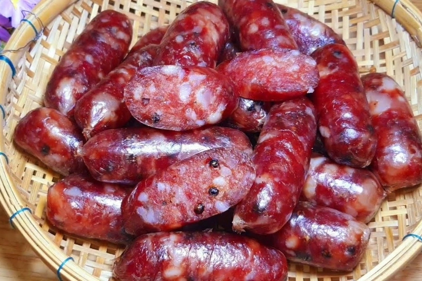 Lạp xưởng Na Hang là món ăn truyền thống thường được chế biến vào mùa đông, khi tiết trời se lạnh. Người dân chọn thịt lợn bản tươi ngon, nhiều nạc ít mỡ, thái nhỏ, trộn với gia vị như muối, tiêu, mắc khén, rượu ngô rồi nhồi vào lòng non. Lạp xưởng sau đó được phơi nắng hoặc treo gác bếp cho khô dần, vừa thơm vừa để lâu được. Khi chế biến, chỉ cần nướng trên than hồng hoặc rán vàng, lạp xưởng tỏa hương hấp dẫn, ăn kèm xôi nếp hay cơm nóng đều ngon tuyệt. Đây không chỉ là món ăn để dự trữ cho mùa lạnh, mà còn là đặc sản gói ghém sự khéo léo, cần mẫn và tinh tế trong ẩm thực của người vùng cao Tuyên Quang.