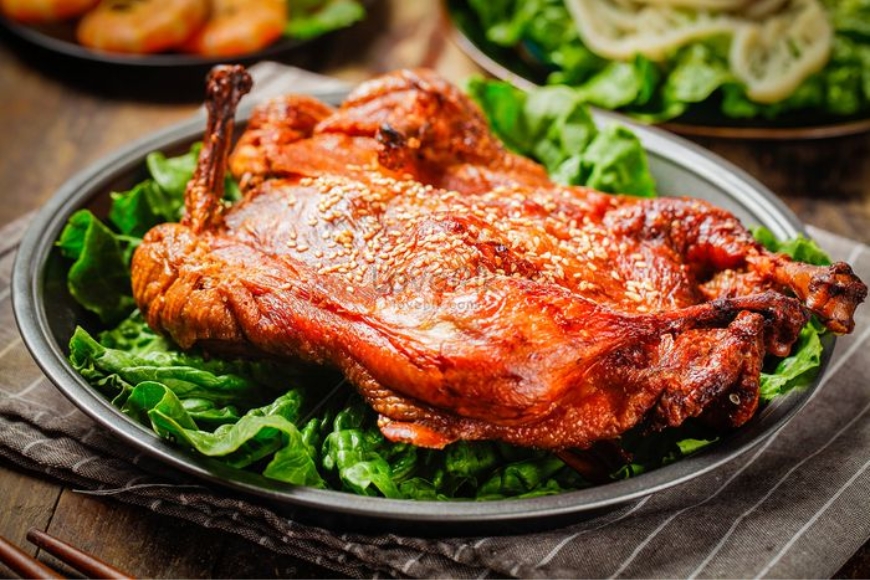 Vịt dùng để nướng là loại vịt ta được chọn lựa kỹ lưỡng, to béo, thịt chắc và được làm sạch cẩn thận. Sau đó, vịt được tẩm ướp gia vị theo công thức riêng và nướng trên bếp than rực đỏ đến khi lớp da chuyển màu nâu óng ả, giòn rụm bên ngoài nhưng phần thịt bên trong vẫn mềm, ngọt và đậm vị. Mỗi miếng vịt là sự hòa quyện của hương vị nướng thơm lừng, vị ngọt béo tự nhiên và chút cay nhẹ của tiêu muối chấm kèm. Thưởng thức món vịt nướng Sa Đéc cùng một phần xôi nóng hổi hay bánh hỏi sẽ càng khiến bữa ăn thêm trọn vẹn. Đây chắc chắn là trải nghiệm ẩm thực không thể bỏ lỡ khi bạn có dịp ghé thăm vùng đất sen hồng Đồng Tháp.