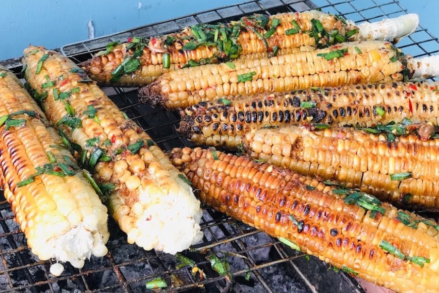 Bắp nướng mắm hay nướng mỡ hành hẹ là một trong những món ăn vặt dân dã nhưng khiến bao du khách phải “nhớ thương” khi đến Đắk Lắk. Buổi tối dạo quanh các con đường ở Tuy Hòa, bạn dễ dàng bắt gặp hình ảnh những xe bắp nướng nghi ngút khói, tỏa ra mùi thơm nức mũi. Bắp được chọn là loại bắp nếp tươi, còn nguyên vỏ, khi khách gọi mới được bóc sạch và nướng trực tiếp trên bếp than hồng cho đến khi hạt bắp dẻo thơm, cháy xém nhẹ. Sau đó, bắp được nhúng đẫm vào tô mắm nêm đậm đà hoặc chan đều lớp mỡ hành hẹ béo ngậy. Sự kết hợp giữa vị ngọt của bắp, mặn mà của mắm và béo thơm của mỡ hành hẹ khiến món ăn tưởng chừng đơn giản này trở thành một trải nghiệm ẩm thực khó quên.