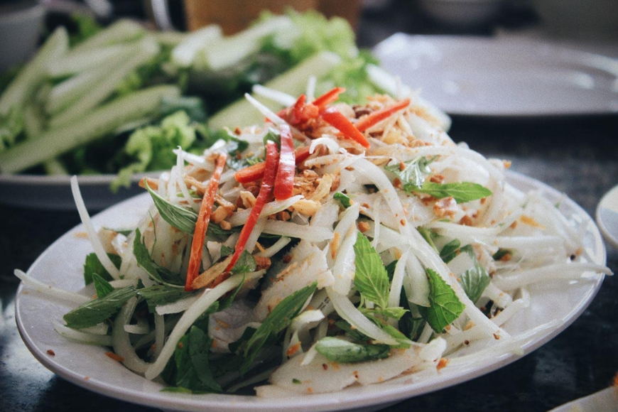 Gỏi cá mai là một trong những đặc sản trứ danh của Đắk Lắk mà bất cứ du khách nào cũng nên thử một lần. Món ăn được chế biến từ cá mai tươi rói, vừa được đánh bắt từ biển vào, sau đó làm sạch, lọc lấy phần thịt trong, giòn và ngọt. Cá được trộn cùng hành tây, rau thơm, đậu phộng rang và gia vị chua cay mặn ngọt hài hòa, tạo nên một món gỏi vừa tươi mát vừa đậm đà. Khi ăn, bạn cuốn gỏi với bánh tráng, rau sống rồi chấm vào chén nước mắm pha khéo – vừa dậy hương, vừa kích thích vị giác.