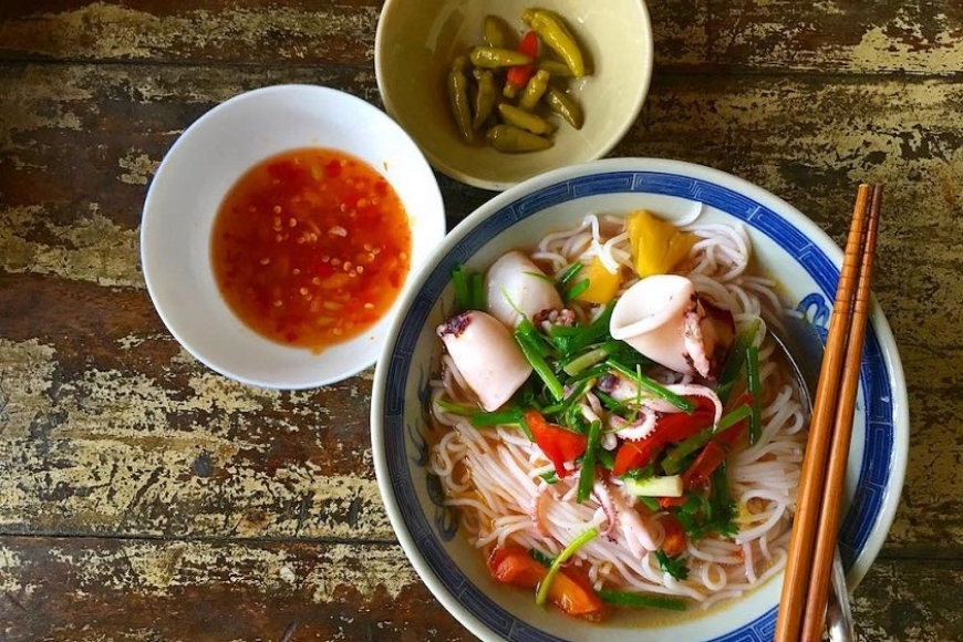 Bún mực Đắk Lắk là một món ăn mang đậm hương vị biển cả, khiến ai từng một lần thưởng thức cũng phải nhớ mãi. Không cần nguyên liệu cầu kỳ, chỉ với những con mực cơm tươi rói vừa được đánh bắt, vài lát thơm chín vàng, chút cà chua đỏ au cùng rau hẹ xanh mướt, món ăn này vẫn đủ sức chinh phục vị giác của bất kỳ thực khách nào. Một tô bún mực nóng hổi bốc khói nghi ngút, nước dùng ngọt thanh từ mực và dứa, sợi bún trắng mềm chan đều nước lèo đậm đà, tất cả hòa quyện tạo nên một trải nghiệm ẩm thực khó quên. Bún mực không chỉ là món ăn, mà còn là một phần ký ức đầy chất biển của vùng đất Đắk Lắk hiền hòa, mộc mạc.