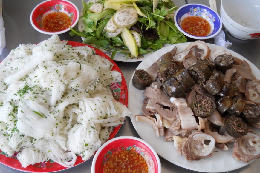 Bánh hỏi lòng heo là món ngon dân dã gắn liền với ẩm thực Đắk Lắk, dễ dàng bắt gặp ở mọi nẻo đường. Bánh hỏi được làm từ gạo xay mịn, ép thành từng lớp bánh mỏng rồi hấp chín bằng hơi nước, tạo nên sợi bánh mềm, dai nhẹ và thơm mùi gạo. Ăn kèm với bánh là lòng heo được sơ chế kỹ, luộc cùng gừng để khử mùi và tăng hương vị. Điểm nhấn không thể thiếu là chén nước mắm chua ngọt, mặn mà, mỗi quán lại có một bí quyết pha chế riêng, tạo nên nét đặc trưng khó trộn lẫn. Khi thưởng thức cùng rau sống tươi, chuối chát thái mỏng và xoài xanh bào sợi, món ăn trở nên hài hòa, đủ vị và hấp dẫn đến lạ, phù hợp cho bất kỳ bữa ăn nào trong ngày.