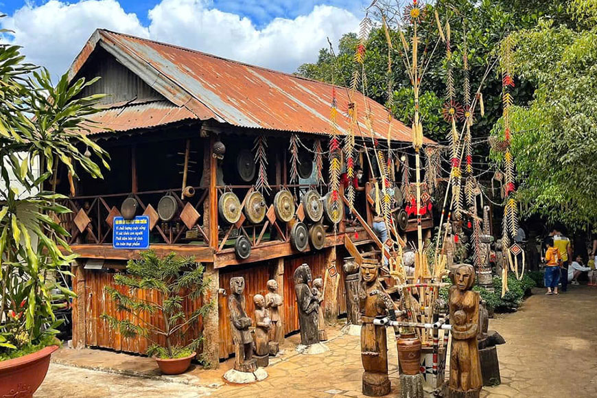Bạn cũng có thể thử đục khắc gỗ tạo hình tượng dân gian, hay chế tác các loại nhạc cụ dân tộc như khèn, đàn T’rưng, rồi nghe chính người Jrai biểu diễn bằng những nhạc cụ ấy.