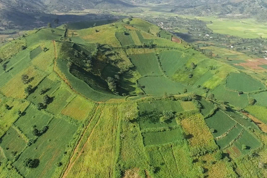 Những triền đồi mướt xanh nối tiếp nhau, được tô điểm bởi những vạt ruộng bậc thang uốn lượn, tạo nên một bức tranh nông nghiệp thanh bình và sống động. Đây là thời điểm lý tưởng cho những ai yêu thích không gian thiên nhiên trong trẻo, muốn tạm rời xa phố thị để tìm về với nhịp sống của đất trời người Tây Nguyên.